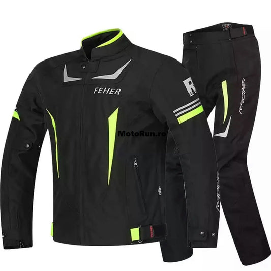 COSTUM MOTO 2 PIESE / Combinezon negru/verde neon