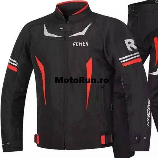 COSTUM MOTO 2 PIESE / Combinezon negru/alb rosu